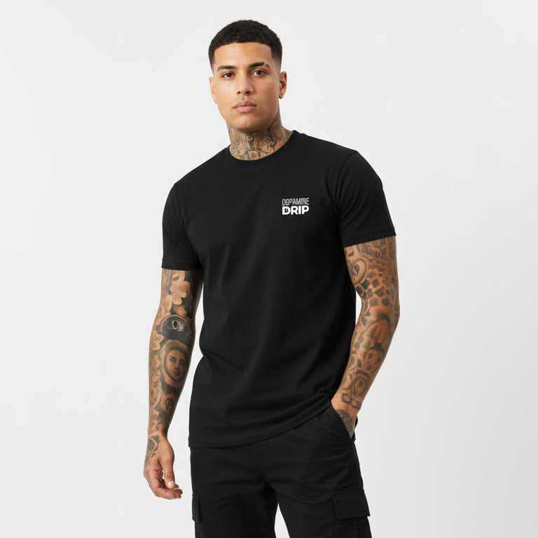 The Core Tee – Understated is Dopamine Drip at its most restrained. A small left-chest logo keeps things clean and deliberate. Built for the days when the uniform matters more than the statement.